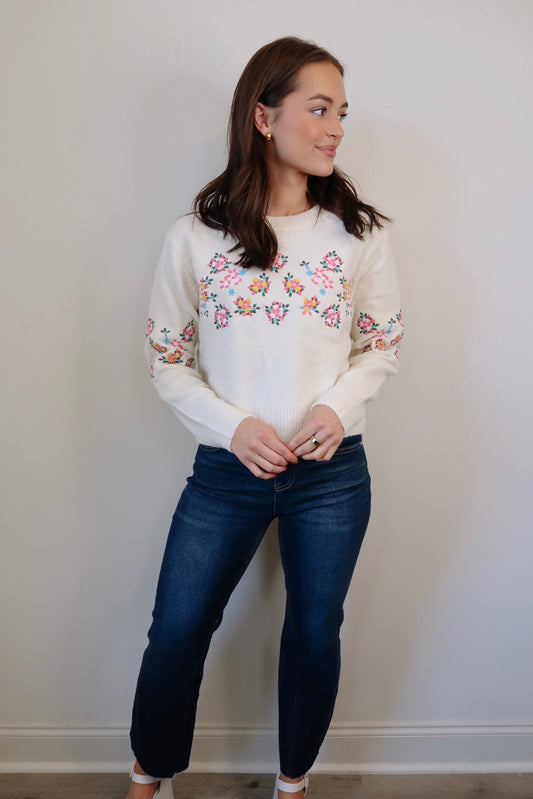 Flowers for You Embroidered Sweater