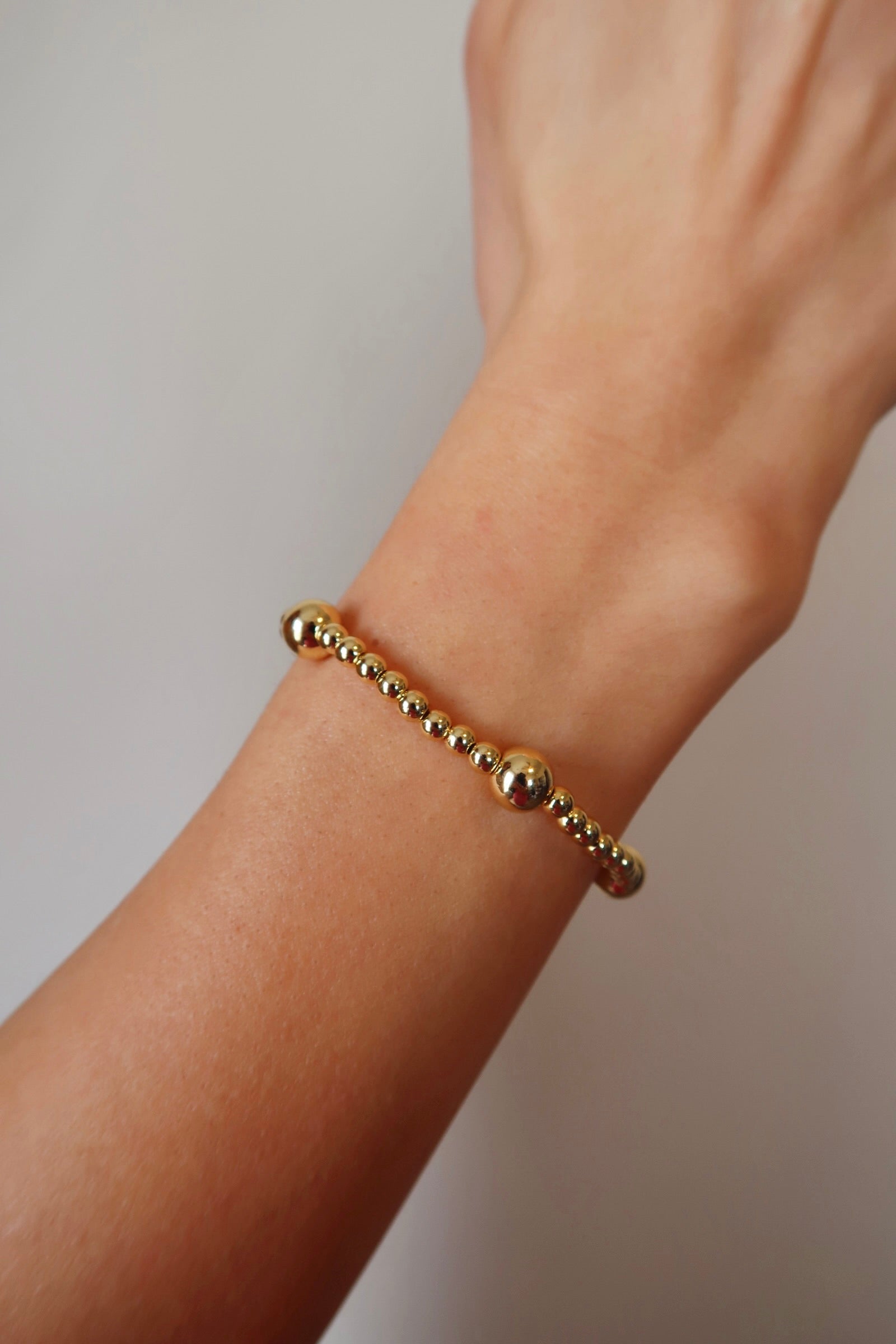 Add a touch of luxury to your everyday look with our Hint Of Gold Stretch Bracelet. Made with tarnish-free material, this timeless piece is not only a stylish accessory but also easy to stack with other bracelets. Elevate your style game with a playful touch of gold.
