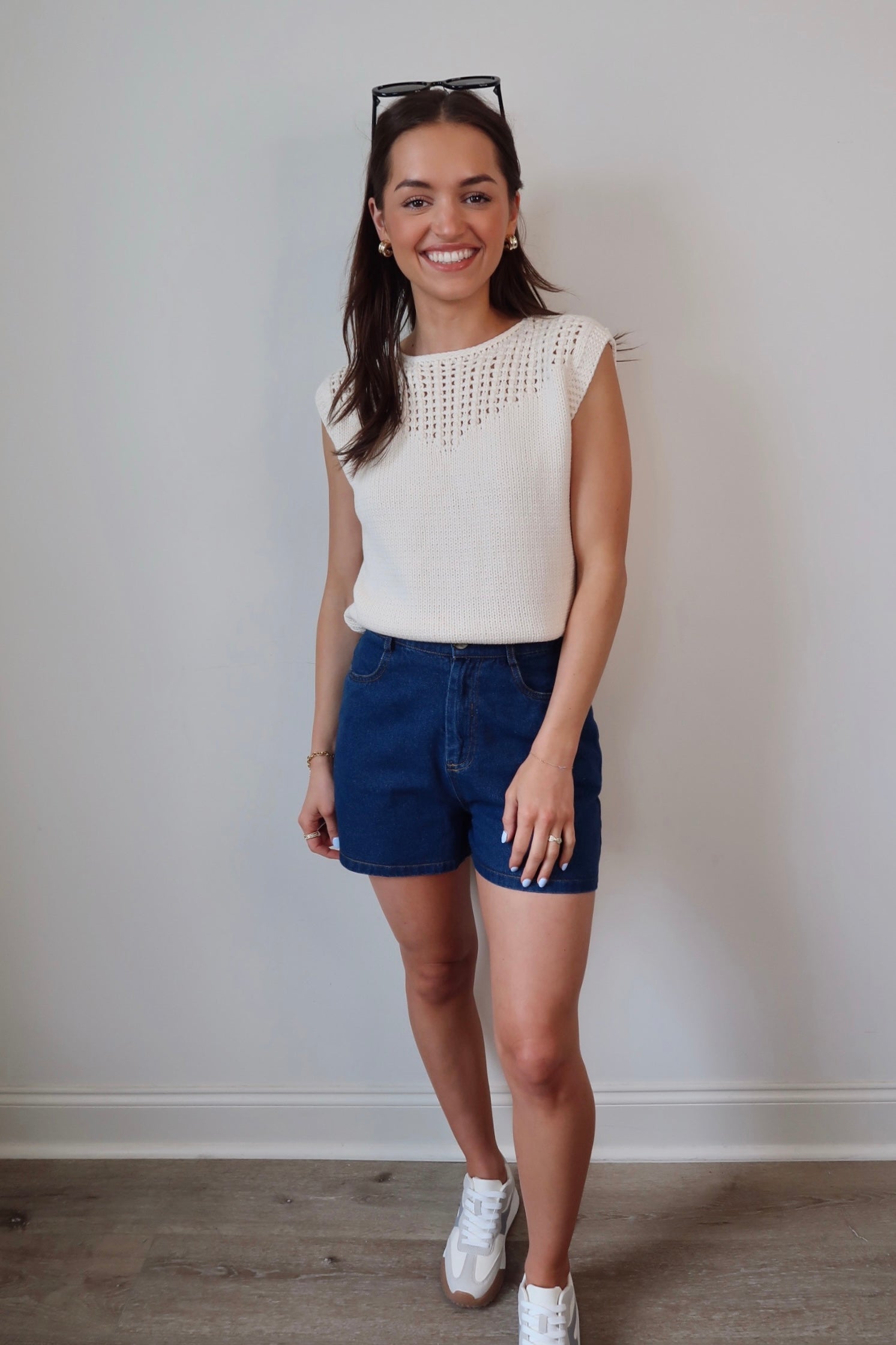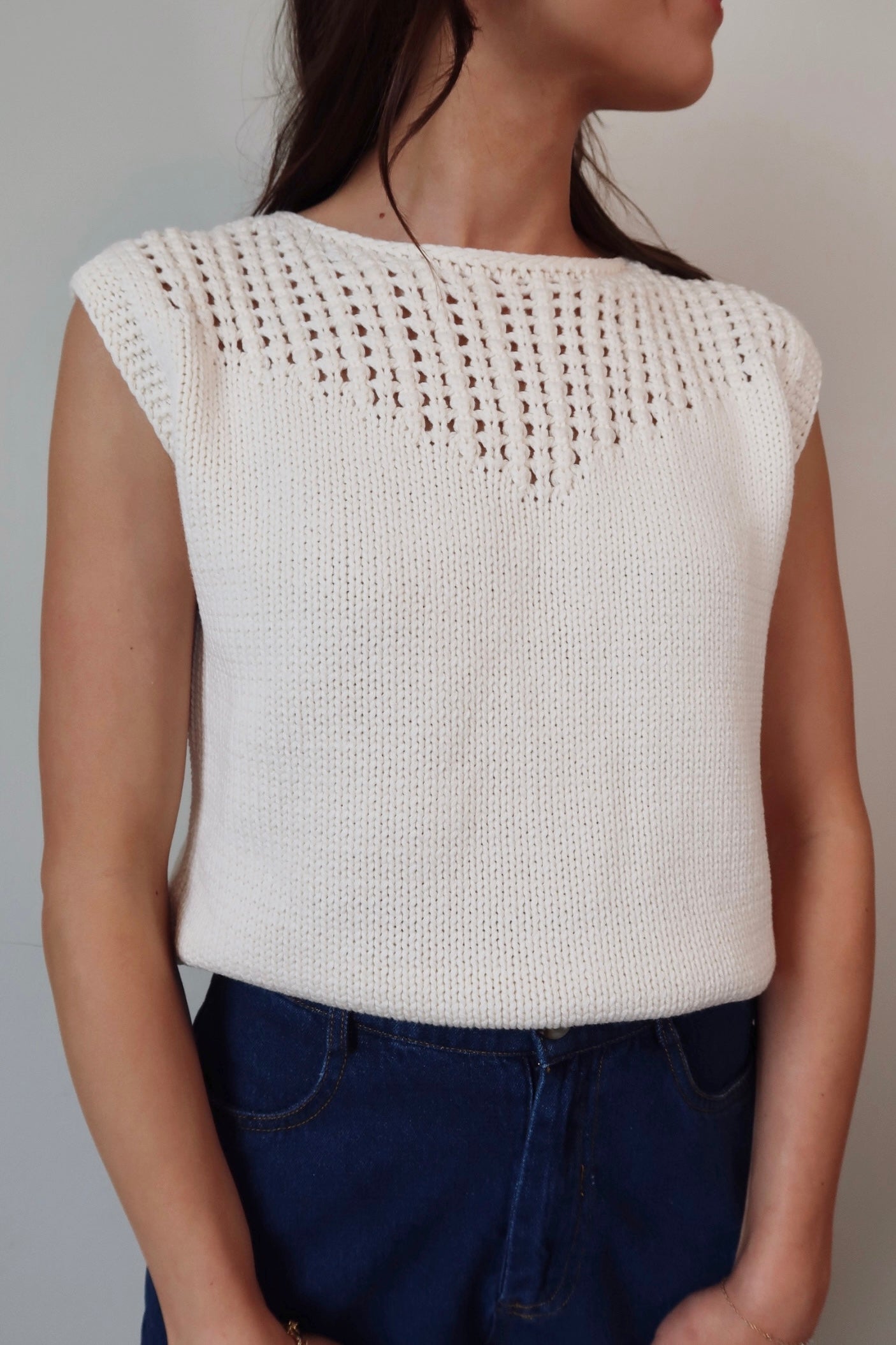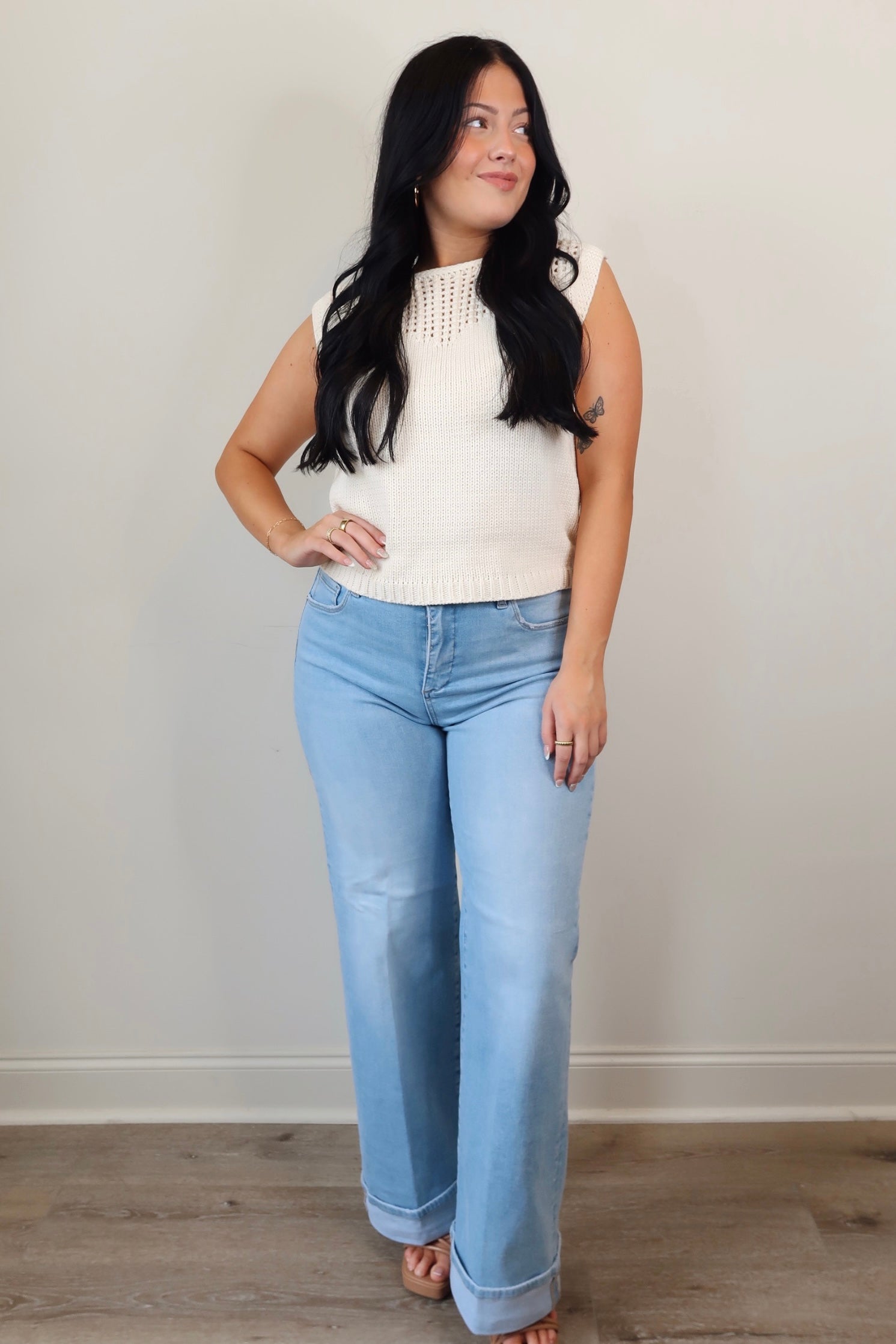 Get in your groove with this cream knit top! Featuring delicate crochet detailing on the neckline and trim, this top effortlessly adds a touch of femininity to your look. Easily styled with denim or fun colored pants, it's the perfect versatile addition to your wardrobe.