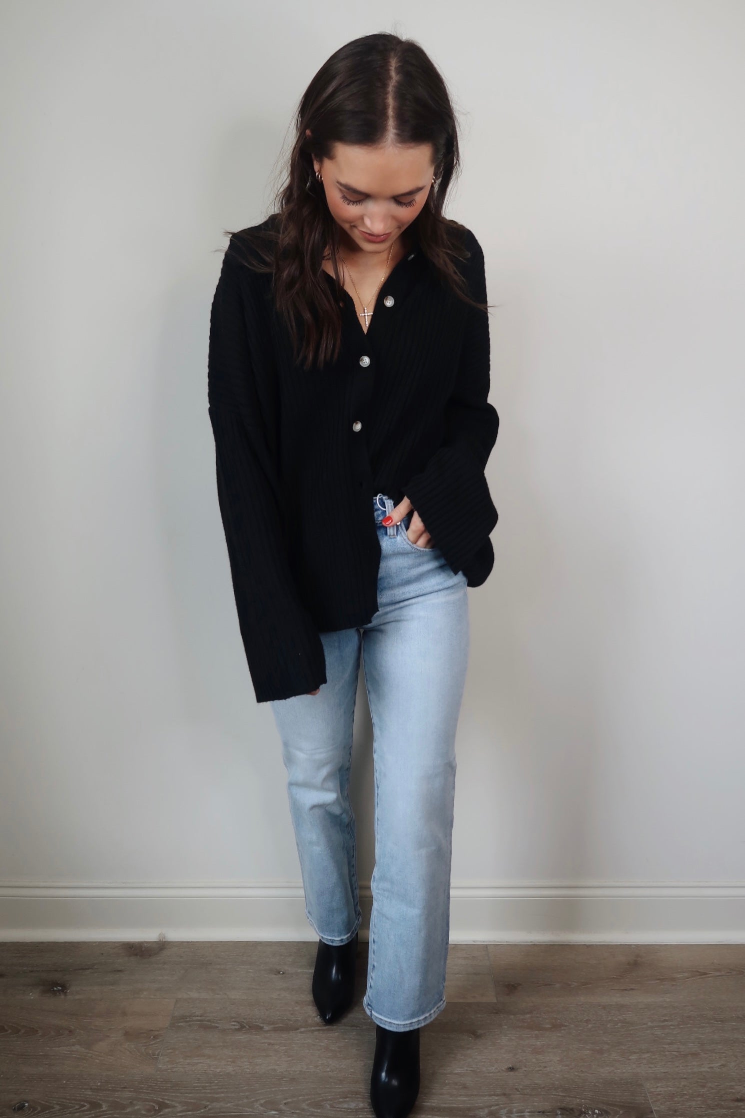 Loving the simplicity of this knit sweater top. Her button details, collar, loose fit and loose sleeves keep you comfortable and stylish! We love pairing her with denim or leggings!!