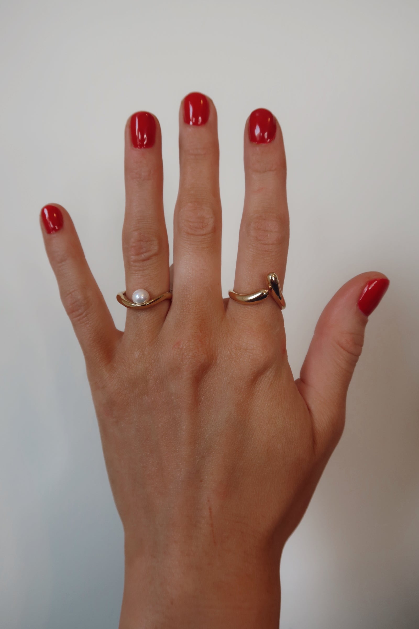 A modern classic, this ring contains a special pearl stud warped metallic band design. Unleash the charm of this versatile ring, effortlessly turning any outfit into a fashion statement.