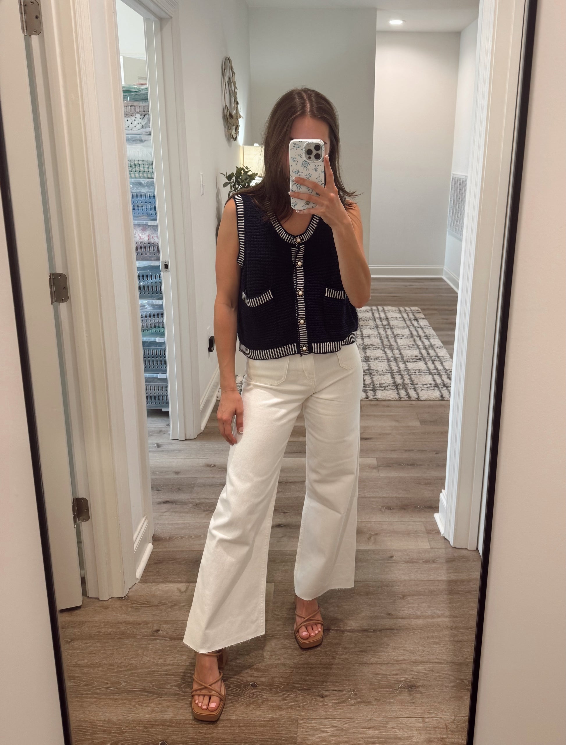 Introducing the Julia Denim - your new summer staple! Made of lightweight, white denim, these straight wide leg pants are perfect for both work and play. With amazing stretch and front pockets for added flare, you'll love how these pants keep you looking and feeling cool all summer long.