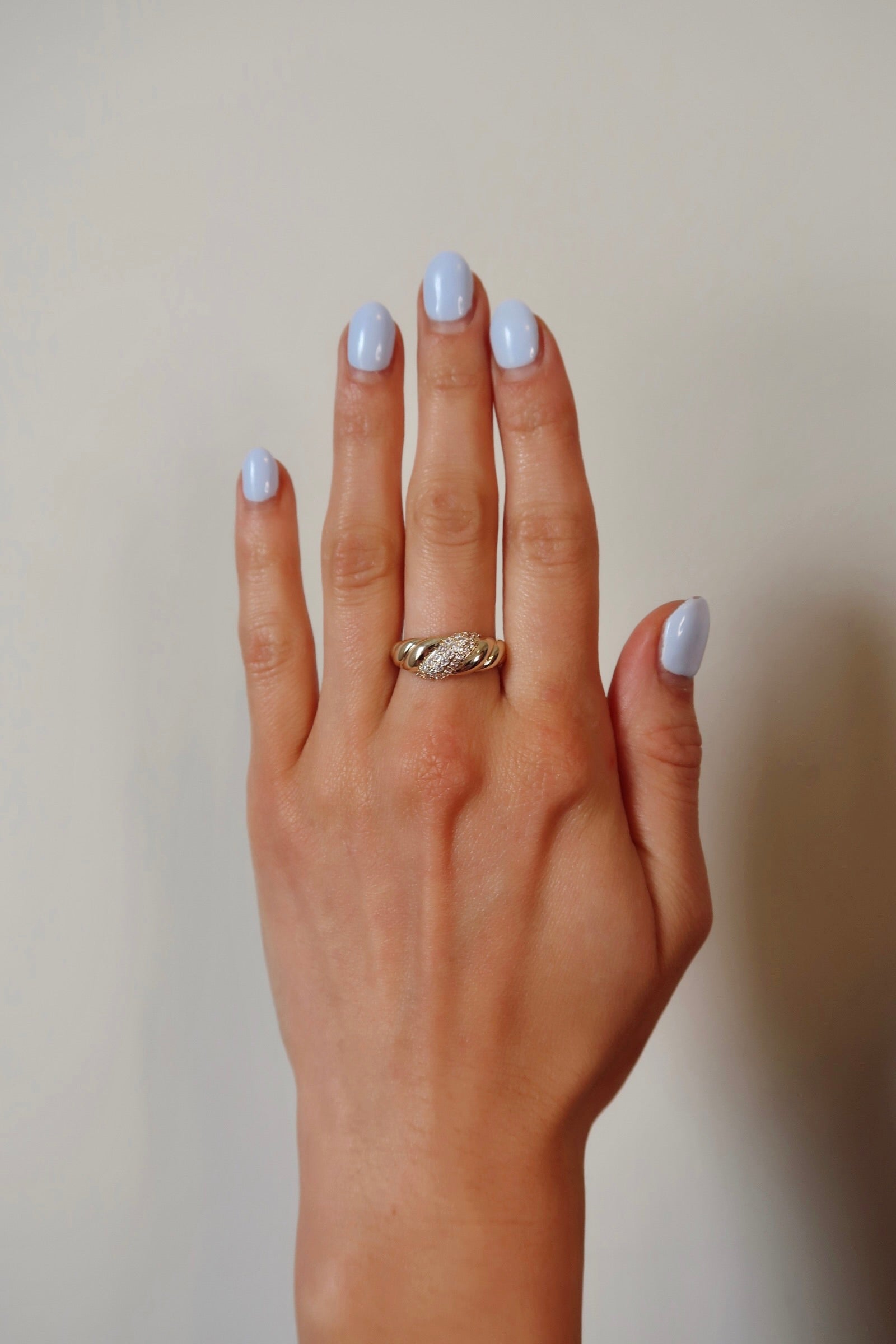 Indulge in the tasty style of our When In Rome Croissant Ring! Featuring a classically chic design with a fun rhinestone detail, this ring is a must-have for any jewelry lover. Treat yourself and add a touch of fun to your collection with this delightful ring.